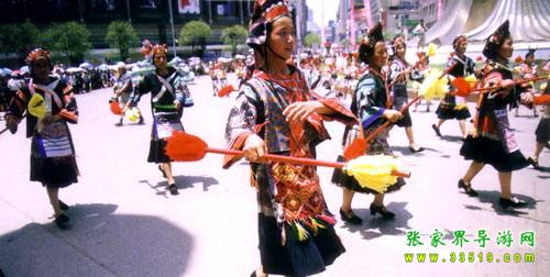 亞宜帶領(lǐng)眾人迎敵,戰(zhàn)斗了三天三夜,終因寡不敵眾向西撤退,得到貴州苗族支持,同官家周旋了一年。第二年四月八亞宜和貴州英雄亞努等人戰(zhàn)死在貴陽(yáng)城。從那時(shí)起,“四月八”就成了青年男女聯(lián)歡節(jié)和祭祀英雄的紀(jì)念日。盡管歷代統(tǒng)治階級(jí)都以各種借口加以禁止,而具有反抗精神的苗族人民,只是改變了跳花的形式,仍然保留著聚會(huì)對(duì)歌內(nèi)容。一年一次,世代相傳,知道民國(guó)時(shí)期各地才先后中斷。后于一九八一年國(guó)家民委批示統(tǒng)一在京的苗族過“四月八”而才得到恢復(fù)。一九八六年在鳳凰上下落朝井鄉(xiāng)龍?zhí)梁哟澹?ldquo;四月八”的發(fā)源地舉行隆重聚會(huì)。這一天啟明星才掛在樹尖尖上的時(shí)候,湘黔邊境各地的男女青年,身著節(jié)日的盛裝,踏著路邊毛草上的露珠,唱著歌,吹著木葉,嘻嘻哈哈,迎著燦爛的朝露,從各條彎彎的山道上,向“跳花溝”涌來。十嶺八坡,山溝里外,龍河兩岸都站滿了人,熙熙攘攘,熱鬧非凡。會(huì)場(chǎng)的正中掛有寬六尺長(zhǎng)七尺的淺紅大旗,繡有“四月八”三個(gè)大字,兩邊龍鳳圖案,莊嚴(yán)古樸,表示歷史悠久和不忘祖先功德。