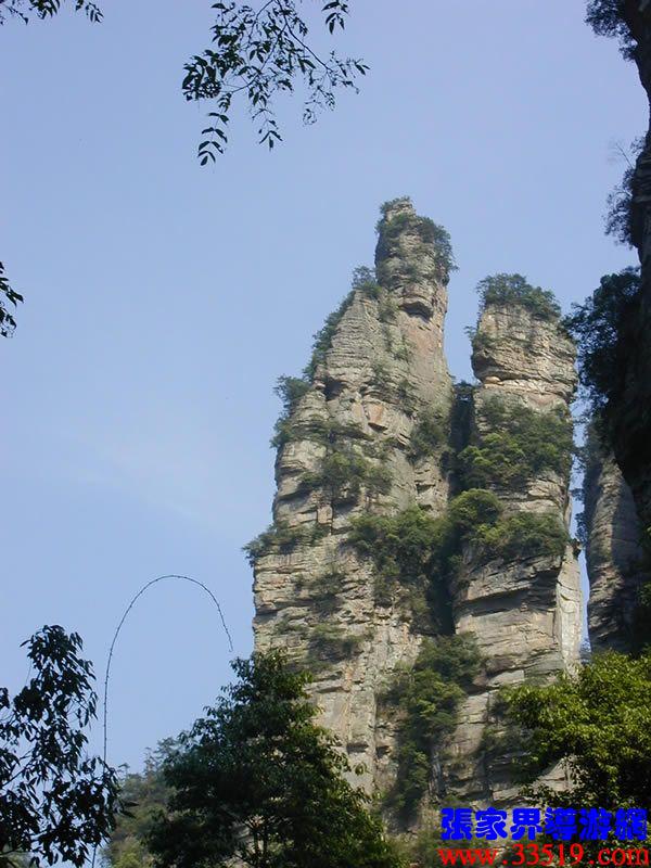 (花果山、水簾孫悟空的花果山水簾到了。并不是張家界人過于牽強,胡亂把西游記的事兒往這兒湊,實在是巧合,《西游記》劇組的導(dǎo)游楊潔及唐僧、豬八戒、孫猴子、沙和尚等飾演者,一見到這地方就十分肯定地說:外景地選遍全國,只有張家界才真正是《西游記》筆下的神仙妖魔世界。大家順著我的指向往前看,左前方是帶著僧帽,披著袈裟,嘴中念念有詞的唐僧,緊跟在他后面的那座黑乎乎的石峰當(dāng)然就是沙和尚了;神通廣大的孫猴子半蹲在唐僧后側(cè)手搭涼篷,正在觀察敵情呢;豬八戒哪去了?不用說,不是貪吃貪睡,就是偷偷找小女子搭訕去了,花心去了。
