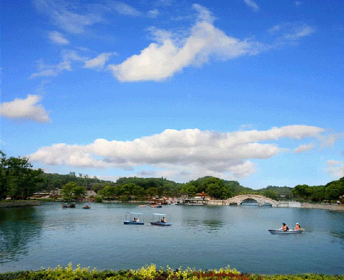 君山又是一個(gè)秀麗的綠洲,島上的草木自古就很聞名。現(xiàn)在每逢初春漲水之前,湖灘上綠草綿綿,野花斑斕,頗具草原風(fēng)味;一到夏天水漲,葦葉青青,水鳥出沒,又是一派蘆蕩景象。君山有各種各樣的樹,多達(dá)200余種,各種花卉,四時(shí)怒放,真是青碧連云,香飄全島。叢綠之中,尤以竹林、茶園最富特色。