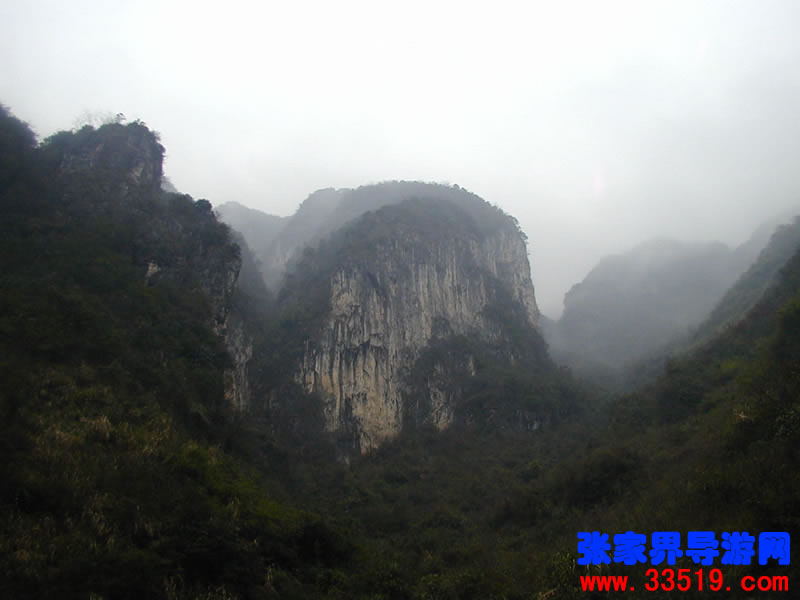 南天門——沿著河水一直往里走,在溪水最深處,可以仰望那隱藏在云霧里的南天門。它并不同于天門山的天門洞。它獨立于眾山之中,就像真正的通天大門,當你翻過了前面的天門洞,卻還要再通過這座南天門,方可真正羽化登仙。南天門旁邊的幾座山峰,也都生的奇形怪狀,倒也天然形成了一個個大大小小的自然景觀。宛如天兵天將般守衛(wèi)南天門的將軍巖,象征南天門仙家氣息的蠟燭峰等,散落在四周,構(gòu)成了一個整體的山體奇觀。