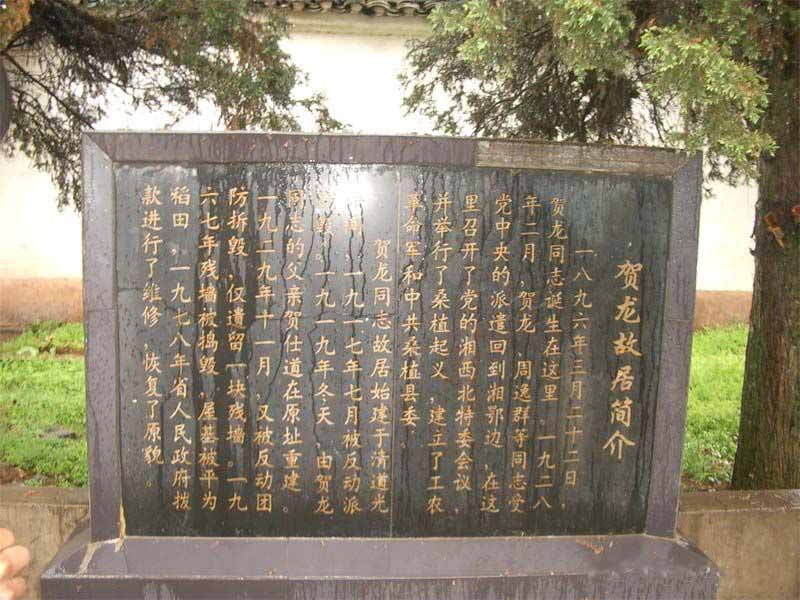 為了紀(jì)念偉大的革命元帥。1977年省縣兩級(jí)政府撥款,賀龍故居按舊居原貌修復(fù)的。賀龍紀(jì)念館于1996年3月25日賀龍誕辰100周年之際竣工落成,大門上首的墨色大理石匾額上,是江澤民親筆題寫的“賀龍紀(jì)念館”幾個(gè)燙金大字。。賀龍紀(jì)念館與賀龍故居、賀龍橋成犄角之勢。