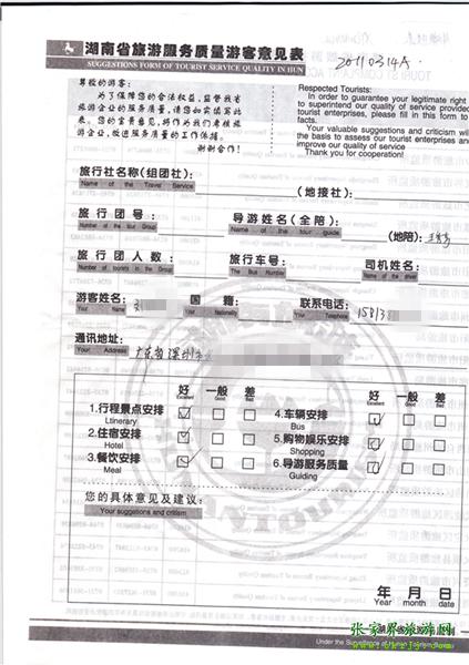 - 2011年10月26日張小姐一行18人旅游質(zhì)量反饋 [10482]