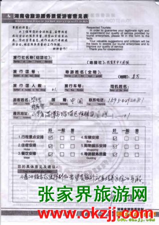 2010年3月30日山東張先生一行6人長(zhǎng)沙張家界鳳凰旅游質(zhì)量反饋