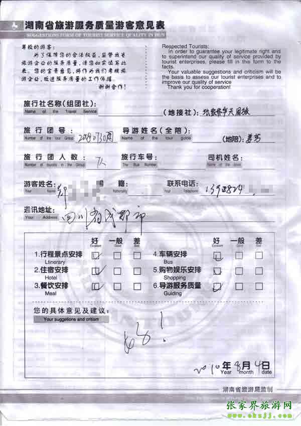- 游客夏先生為表揚導游李姣姣寫來表揚信致我張家界... [14811]