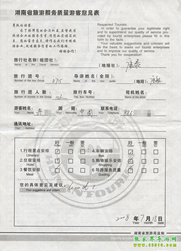 - 游客夏先生為表揚(yáng)導(dǎo)游李姣姣寫來表揚(yáng)信致我張家界... [14811]