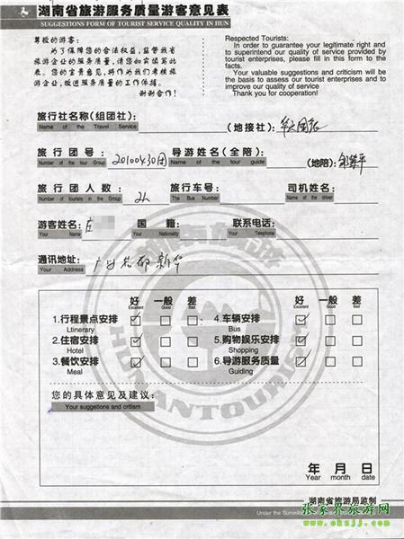 2011年5月2日莊先生一行2人旅游質量反饋