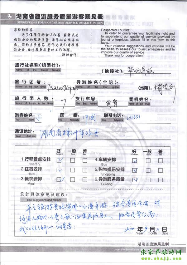 - 游客夏先生為表揚導游李姣姣寫來表揚信致我張家界... [14811]
