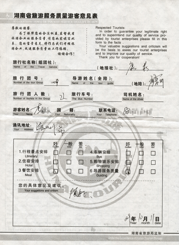 - 2011年10月26日張小姐一行18人旅游質(zhì)量反饋 [10482]