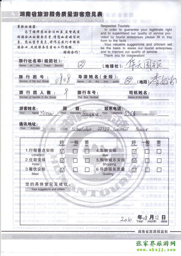 2010年8月12日法國Moreav一行9位旅游質(zhì)量反饋