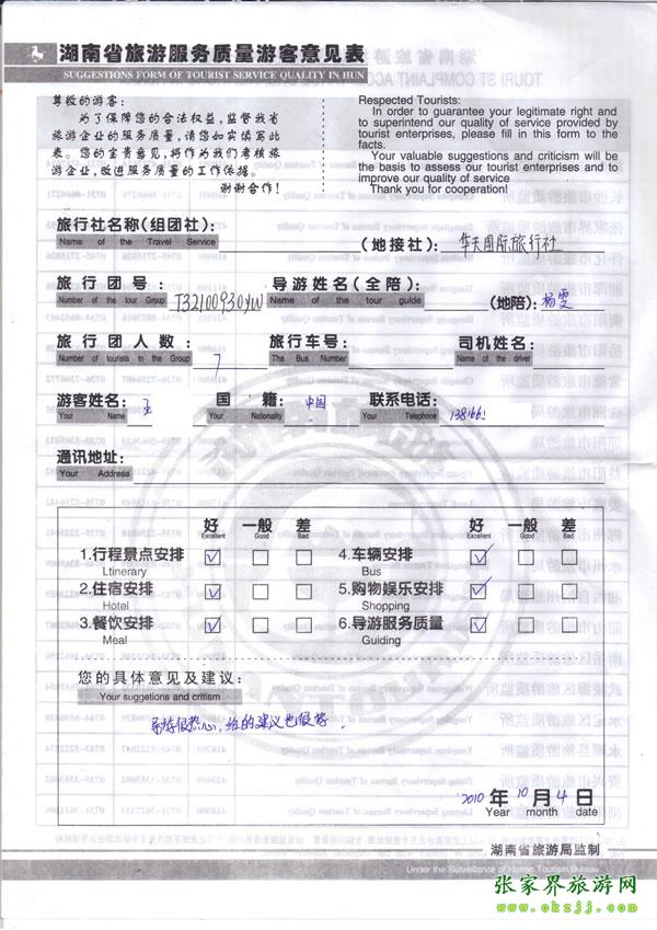 - 2011年10月26日張小姐一行18人旅游質(zhì)量反饋 [10482]