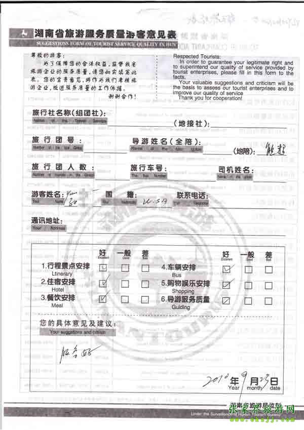 - 2011年10月5日黃先生一行17人旅游質(zhì)量反饋 [7847]