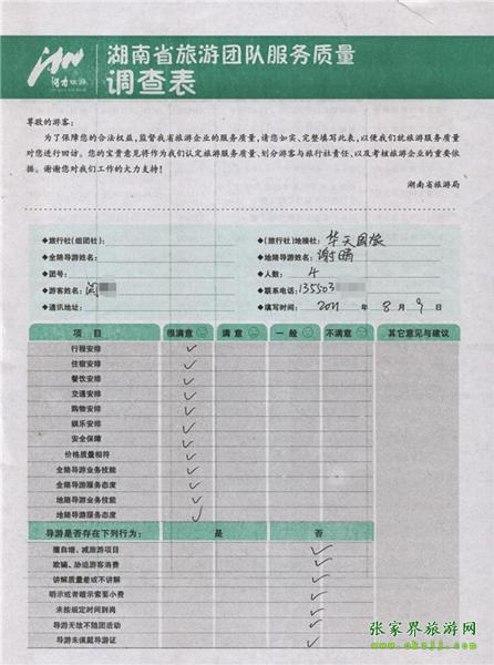 2011年8月9日閻小姐一行4人旅游質(zhì)量反饋