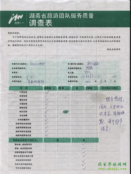 2011年8月7日于小姐一行25人旅游質(zhì)量反饋:我們非常滿意!