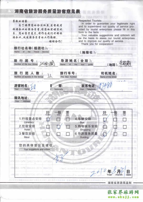 - 游客夏先生為表揚(yáng)導(dǎo)游李姣姣寫來表揚(yáng)信致我張家界... [14811]