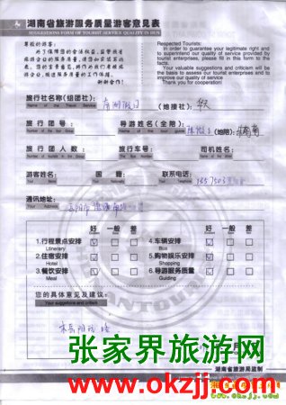 - 游客夏先生為表揚(yáng)導(dǎo)游李姣姣寫來表揚(yáng)信致我張家界... [14811]