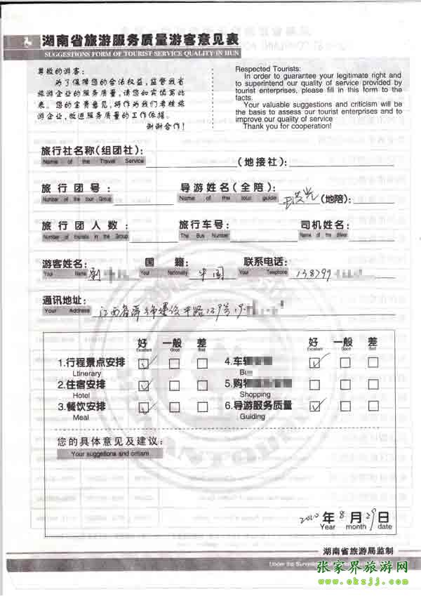 - 游客夏先生為表揚導(dǎo)游李姣姣寫來表揚信致我張家界... [14811]